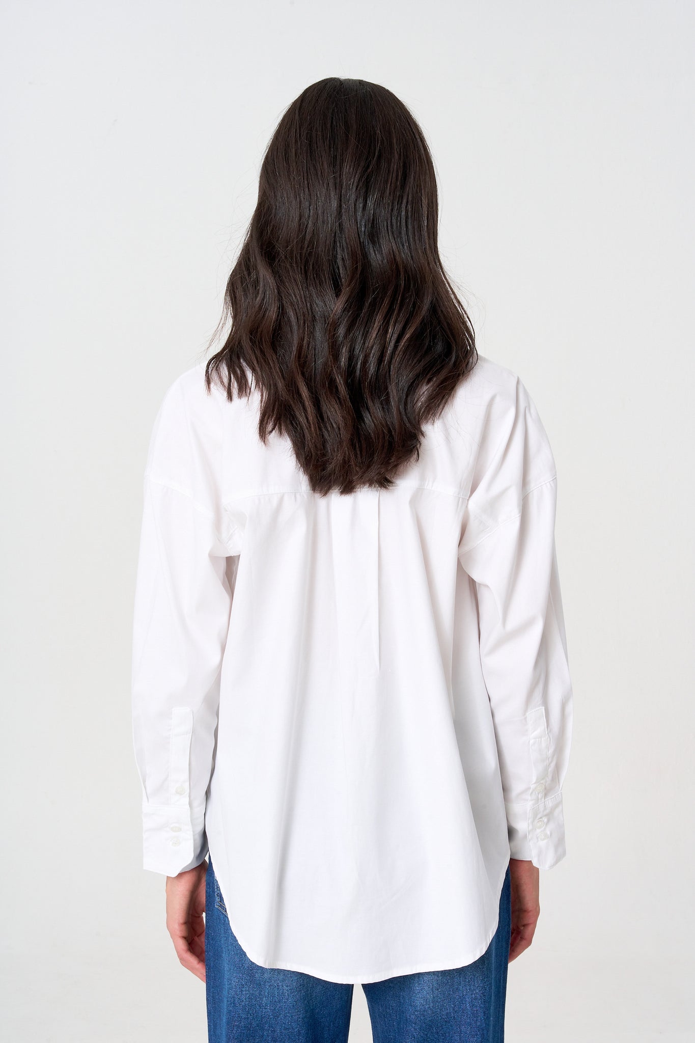 Camisa oversized con bolsillo plateado. Tela 100% algodón.